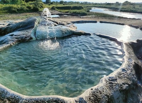 무료 유황온천과 자연을 동시에